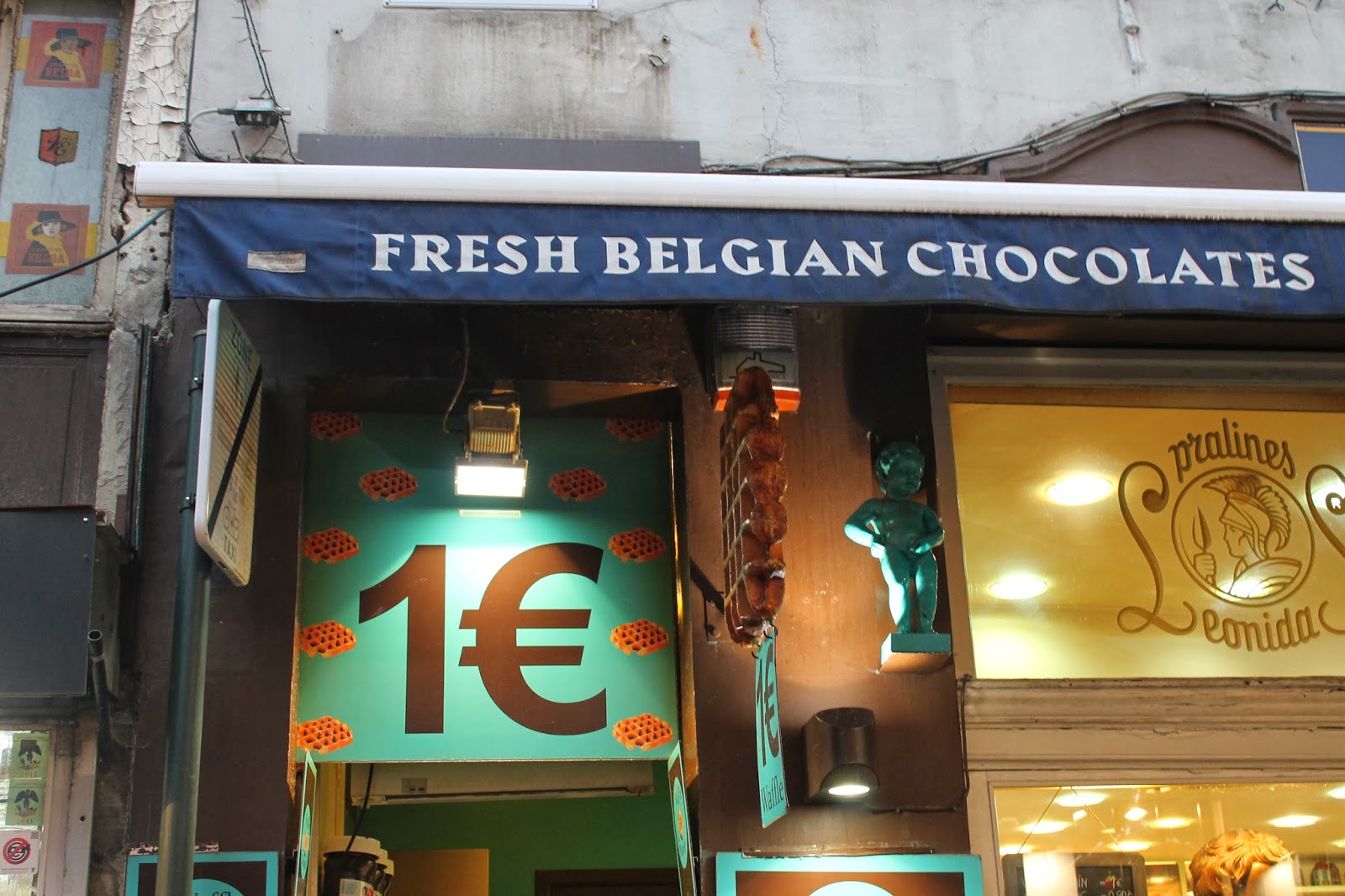Təbii ki, waffle-ı da unutmayaq. Belçikanın milli şirniyyatı ( hansısa millətin milli mətbəxin elə yerindəcə orda dadmaqdan çox xoşlanıram deyə, bugünə kimi waffle yeməmişdim, Belçikada, öz vətənində dadmaq nəsib oldu ). Əla idi, bir sözlə. Səhv etmirəmsə, çiyələkli waffle alıb, 2 avro ödədim.Şokoladın vətəninə gəlib də şokolad almadan getmək olmazdı deyə, hər birimiz həm dadıb, həm də aldıq.Belçikanın çox sayda məşhur şokolad mağazaları var, misal üçün Pierre Marcolini, Godiva, Leonidas və Neuhaur -un adın çəkə bilərəm. Biz Leonidas-dan hədiyyəlik şokoladlarımızı aldıq.