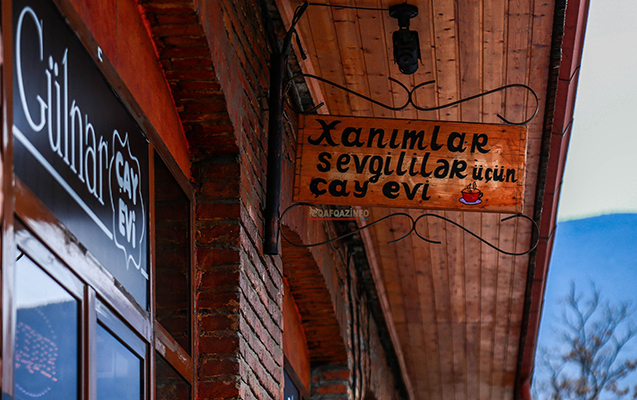 Bölgələri gəzən zaman kafe və restoranlarda daha çox kişilərin əyləşdiyini, xanımların nəinki çay evlərinə getmək, həndəvarından belə keçmədiyini müşahidə etmiş olarsız. Şəkililər buna da bir əncam çəkib. Kafedə açıq-aydın yazılıb ki, bura xanımlar və sevgililər üçündür.