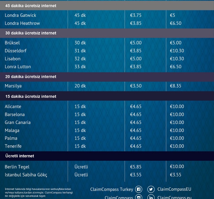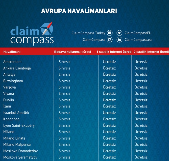 “Claim Compass” hüquq şirkətinin Türkiyə bölməsi Avropanın hava limanlarındakı Wifi şəbəkələri ilə bağlı maraqlı hesabat hazırlayıb.