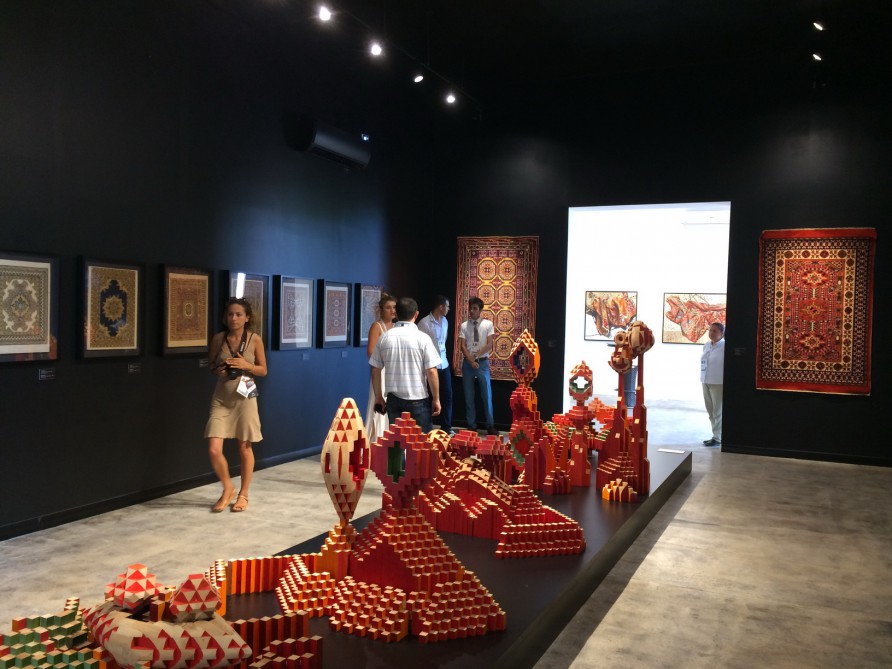 Sərgidə Azərbaycan xalçalarının zərif naxışları, nəfis Azərbaycan xalılarının rəsmləri olan orta əsrlər Avropa rəssamlarının əsərlərini nümayiş etdirən multimedia layihəsi, Azərbaycan Xalça Muzeyinin eksponatları, Azərbaycan xalçaçılıq elminin banisi Lətif Kərimovun eskizləri, eyni zamanda, müasir rəssamlar Vüqar Muradov, Elçin Vəliyev və heykəltəraş Butunay Haqverdiyevin əsərləri nümayiş olunur.