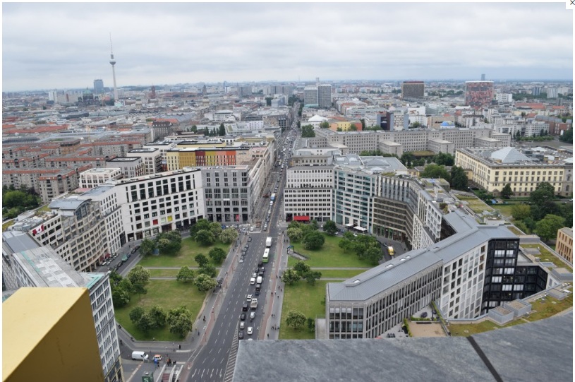 Lakin biz bu şəhərin panoramını başqa bir yerdə - Potsdam meydanındakı Panoram məntəqəsindən (Panoramapunkt) çəkməyi qərara aldıq. 1999-cu ildən ziyarətçilər üçün açılmış müşahidə meydançasından baxanda Brandenburq darvazaları, Reyxstaq, Almaniya federal kanslerinin idarəsi, Belvyu sarayı, Berlin kafedral kilsəsi, Jandarmenmarkt, kayzer Vilhelm memorial kilsəsi və şəhərin başqa məşhur obyektləri görünür. Bu bina həm də onunla əlamətdardır ki, orada bütün Avropada ən sürətli - saniyədə 8,5 metr məsafə qət edən lift qoyulub. Gözünüzü yumub açınca 100 metr yüksəkliyə (25-ci mərtəbəyə) çatırsınız.
