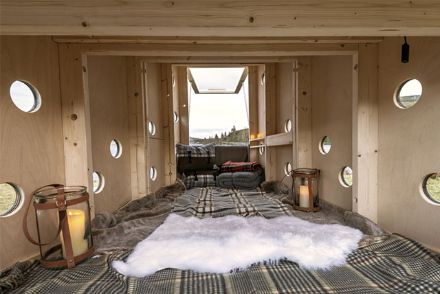 Evcik Land Rover Discovery Sport yolsuzluq avtomobilinin baqaj yerinə hesablanıb. Burada 2 böyük adam rahat şəkildə yerləşə bilər. Yaşayış kapsulu 20 dərəcə şaxtaya qədər soyuqdan qorumanı təmin etməyə qadirdir. Modulu Everesti 12 dəfə fəth edən Kenton Kul sınayıb. Kapsul trapesiya şəkilli formaya sahibdir və böyük şüşə pəncərə ilə təchiz olunub, bu şüşə həm giriş qapısı, həm də panoram dam rolunu oynayır. Günəş batareyası smartfon və ya planşetləri şarja qoymağa imkan verir. Kapsulun döşəməsi və çərçivəsi Danimarka şam ağacından hazırlanıb, dam və yanlar çoxqatlı fanerdən hazırlanıb.