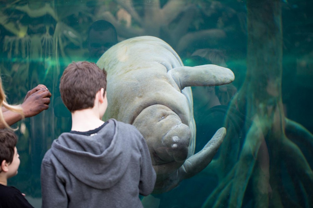 Amma tropik qurşağın ekosistemini təkrarlayan qapalı pavilyon bizə daha güclü təsir bağışladı. Pavilyona girəndə sanki cəngəlliyə düşürsən. Burada “səyyahlar ağacı” deyilən Madaqaskar ravenalası, banan, papaya və digər ekzotik bitkilər bitir. Onlar bəzən nəhəng ölçüdə olur. Düz tavanın altında Cənubi Amerikanın ərincək meymunları yuxarı dırmaşır. Şüşə arxasındakı volyerlərdə qarışqayeyənləri, lemurları, tutuquşuları müşahidə etmək olar. Akvariumlarda nəhəng Amazon balıqları arapaima və aravana üzür. Böyük hovuzda hətta unikal dəniz məməlilərini görmək olar – zooparklarda lamantinlərə nadir hallarda təsadüf olunur. Rütubətli tropik ətraf mühitin müxtəlifliyini nümayiş etdirmək üçün nəzərdə tutulan bu pavilyonun kolleksiyası seyrçilərə əsl zövq verir!