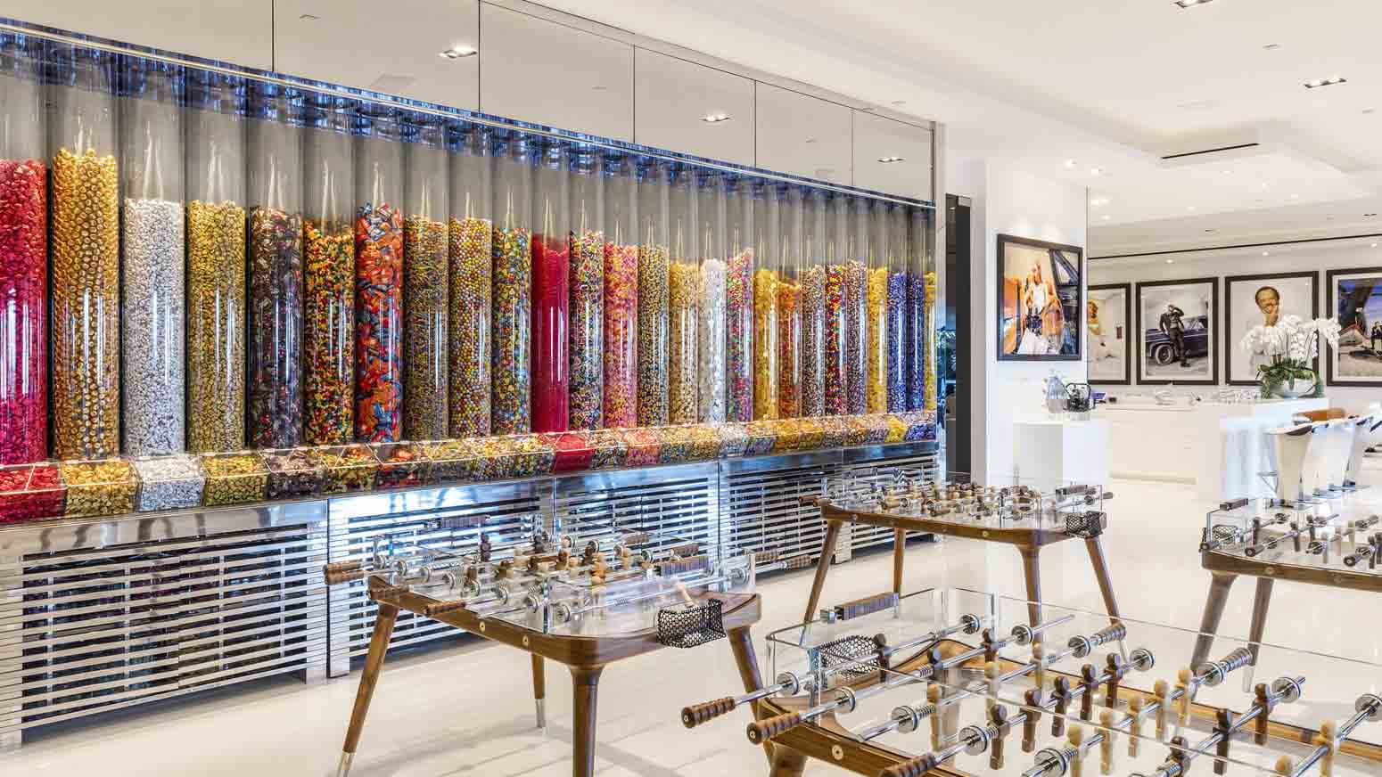 Evdə həmçinin 130 müxtəlif sənət əsəri, 30 milyon dollarlıq 12 avtomobildən ibarət kolleksiya və helikopter meydanı belə mövcuddur.