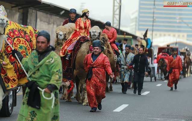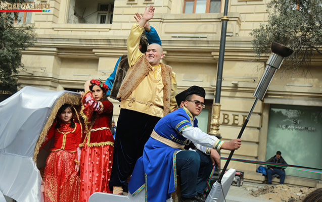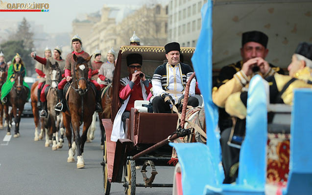 Bu münasibətlə metronun “İçərişəhər” stansiyası və Bakı Şəhər İcra Hakimiyyəti binasının yanındakı ərazidən Novruz personajları – Dədə Qorqud, Bahar qızı, Kosa, Keçəl musiqi qruplarının, həmçinin dəvələr, süvarilər və faytonların müşayiəti ilə böyük karvan Suraxanı “Atəşgahı”na yollanıb.