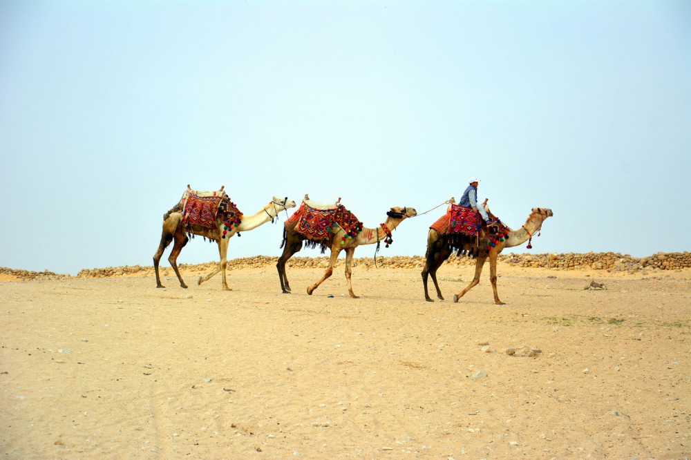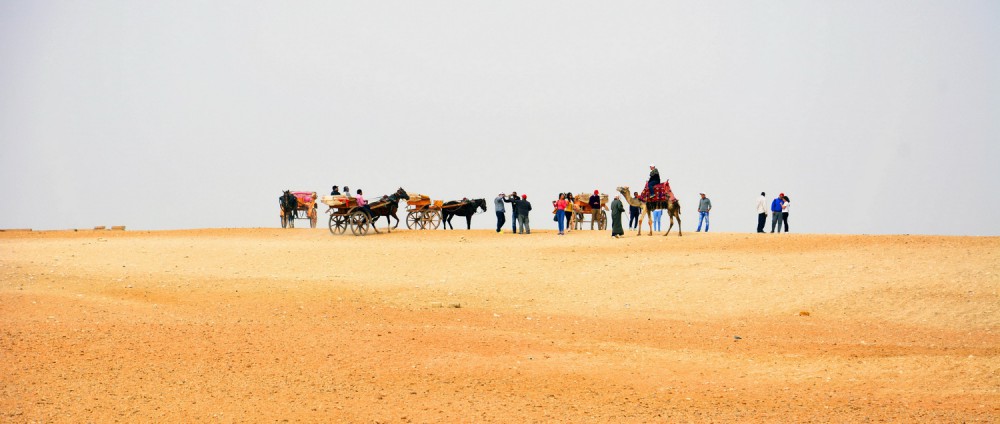 Piramidaların ətrafı nəinki turistlər və yerli sakinlər, eyni zamanda, suvenir satanlar, həmçinin at və dəvə çarvadarları ilə dolu olur. Turistlərə at və dəvələrdə gəzmən təklif edilir. Hətta dəvənin üstündə səhraya təxminən yarım saatlıq kiçik səyahətə də çıxmaq olar: dəvə sahibi sizi 3 nəhəng piramidanın və sfinksin ovuc içi kimi göründüyü xüsusi yerə aparmağa söz verir.