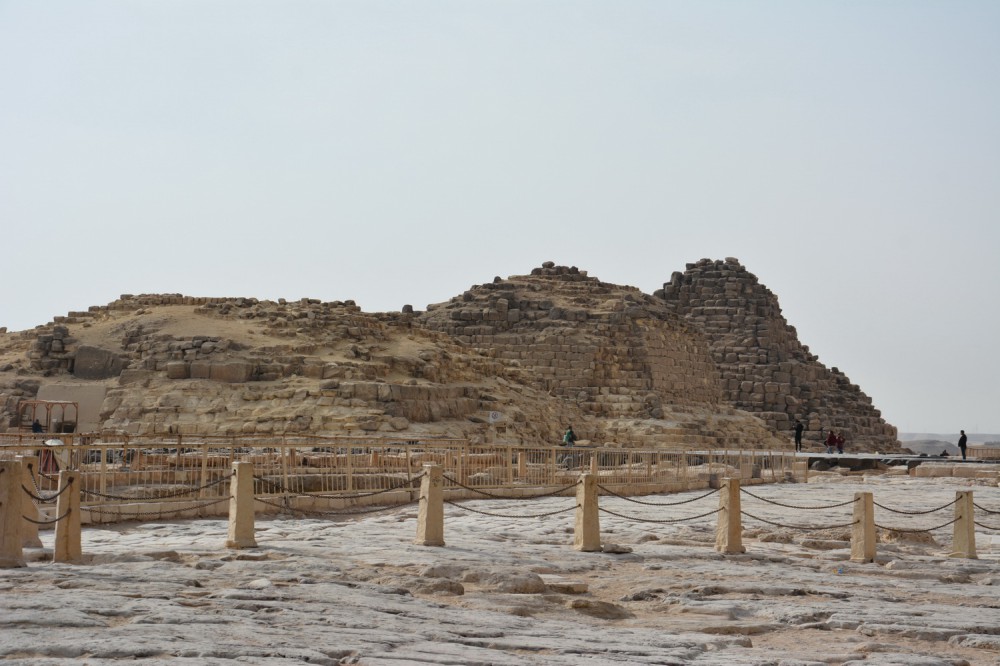 Həmçinin əlavə pul ödəməklə salamat qalmış bir neçə nəhəng taxta şahmat topuna da baxmaq olar: onlar piramidaların yaxınlığındakı quyudan tapılıb. Gizanın məbəd tikililərindən yalnız firon Xefrenin aşağı sərdaba məbədi qorunub, yuxarı məbədin isə yalnız döşəməsi salamat qalıb. Aşağı məbəd dövrümüzə qədər gəlib çatmayan yastı damı saxlayan iki cərgə çəhrayı mərmərdən düzəldilmiş dördguşəli sütunların olduğu düzbucaqlı zaldan ibarətdir.