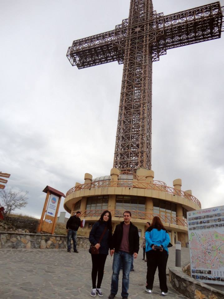 Vodno dağının başında yerləşən, xristianlığın mövcudluğunun 2000-ci ilinə həsr olunan xaçın hündürlüyü 66 m-dir. Dünyanın ən hündür abidəsidir, hətta Rio de Janeyrodakı İsa (40m), Amerikadakı Azadlıq heykəlindən (46m) də. Xaç 2002-ci ildə Makedoniya pravoslav kilsəsinin, makedonların və dünyanın hər yerindən xristianların ianələri hesabına tikilmişdir. Xaçın içində lift də mövcuddur. Xaça getməkçün taksi ilə kanat yoluna, oradan isə kanatla (bilet 120 denar) 3,9 km yol qət etdikdən sonra buludların üzərinə qalxdıq. Xaçın ətrafında kafe, suvenir dükanları var. Bir az oturub bir meyvə suyu ilə mənzərəni seyr edə, buludların ayaqlarınızın altından süzülüşünündən feyziyab ola bilərsiniz.