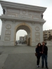 Makedoniya qapısı bir neçə Avropa şəhərində də rast gəldiyimiz Zəfər tağı formasıdr və Pella meydanında yerləşir. Arkanın üzəri mərmərlə örtülmüş, mərmərin üzərində isə tarixi fiqurlar işlənmiş. Əlbəttə ki, bu fıqurların arasında Makedoniyalı İskəndər olmasaydı təəccüblənərdik. Bu möhtəşəm qapı Makedoniyanım müstəqilliyinin 20-ci ilinə həsr olunmuş, 2011-2012-ci ildə tikilmişdir. Hündürlüyü 21m olan qapının içində də lift var. İstəyən yuxarıdan şəhəri izləyə bilər.