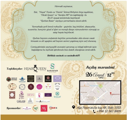 Layihə maddi və mənəvi dəstəyə ehtiyacı olanlara yardım edən “Həyat” Fondunun və “Damla” İctimai Birliyinin təşəbbüsü, "Sarafan MF" və "Hijab Queen"in təşkilatçılığı ilə keçiriləcək. Yarmarkadan əldə edilən vəsait kimsəsiz və əlil uşaqlara əsil bayram yaşatmaq üçün sərf olunacaq.