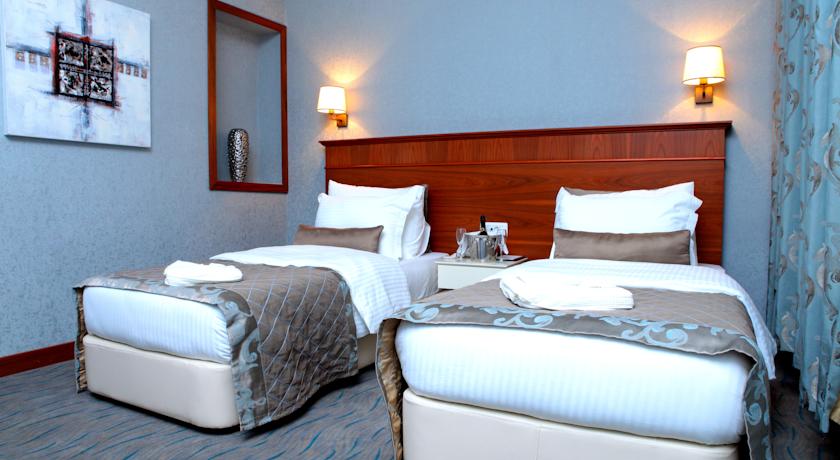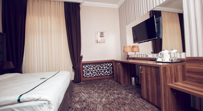 “Deluxe Hotel”in 32 kvm-lik ikinəfərlik standart otaqları 80 AZN-dir. Otaqda çarpayılardan əlavə televizor, kondisioner, soyuducu, istilik sistemi, telefon, geyim dolabı, güzgülü komod var. Hamamında gigiyenik vasitələr, dəsmal və xalat, fen, o cümlədən ev başmaqları mövcuddur. Qiymətə səhər qəlyanaltısı da daxildir. Açıq və qapalı üzmə hovuzu, fitness mərkəzi ödənişsizdir. Türk hamamı, masaj və sauna üçün əlavə ödəniş tələb olunur. Oteldə internet və avtomobil park yeri ödənişsizdir. Otel Nizami Gəncəvi prespekti 42 ünvanında yerləşir. Tel: 050 356 90 00