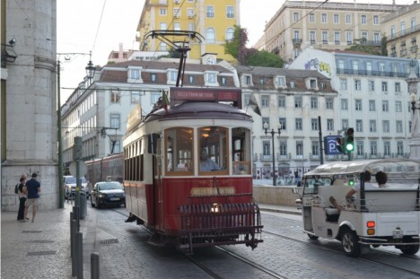 Lissabonda nəqliyyatın digər populyar növü həm tarixi, həm də müasir olan tramvaydır. Bütün bələdçilər turistlərə qədimi sarı tramvaylarda gəzməyi məsləhət görürlər. Onlardan əsası 28 nömrəli tramvaydır. Qonaqların izdihamı səbəbindən yerli əhali bu tramvaya minmir. Tramvayın populyarlığı onun şəhərin Müqəddəs Georgi qəsri, Kommersiya meydanı, Portuqaliya Parlamentinin binası, Şiuadu meydanı və digər diqqətəlayiq yerlərdən keçməsidir. Əlbəttə ki, bu yerlərə başqa nəqliyyat növündə gəlmək daha asandır, lakin hamı mütləq sarı tramvayda getmək istəyir. Fırıldaqçılar isə bu vəziyyətdən istifadə edirlər. Tramvayların salonlarında cibgirlərdən ehtiyatlı olmaq barədə xəbərdarlıq da yazılıb.