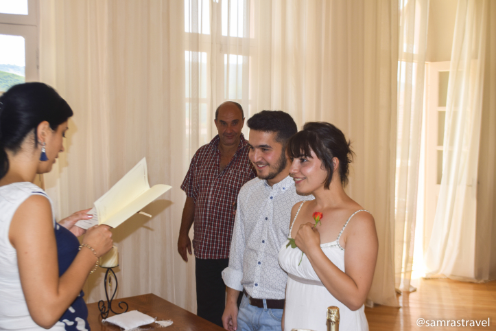 Gürcü dilində danışan nigah məmuruna istədiyiniz dildə cavab verə bilərsiniz. Mən ingilis, Orxan isə rus dilində “hə” dedik