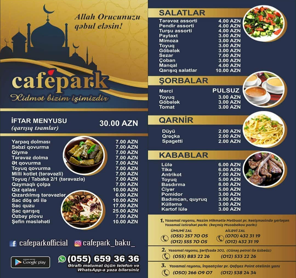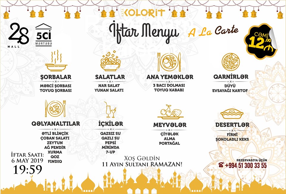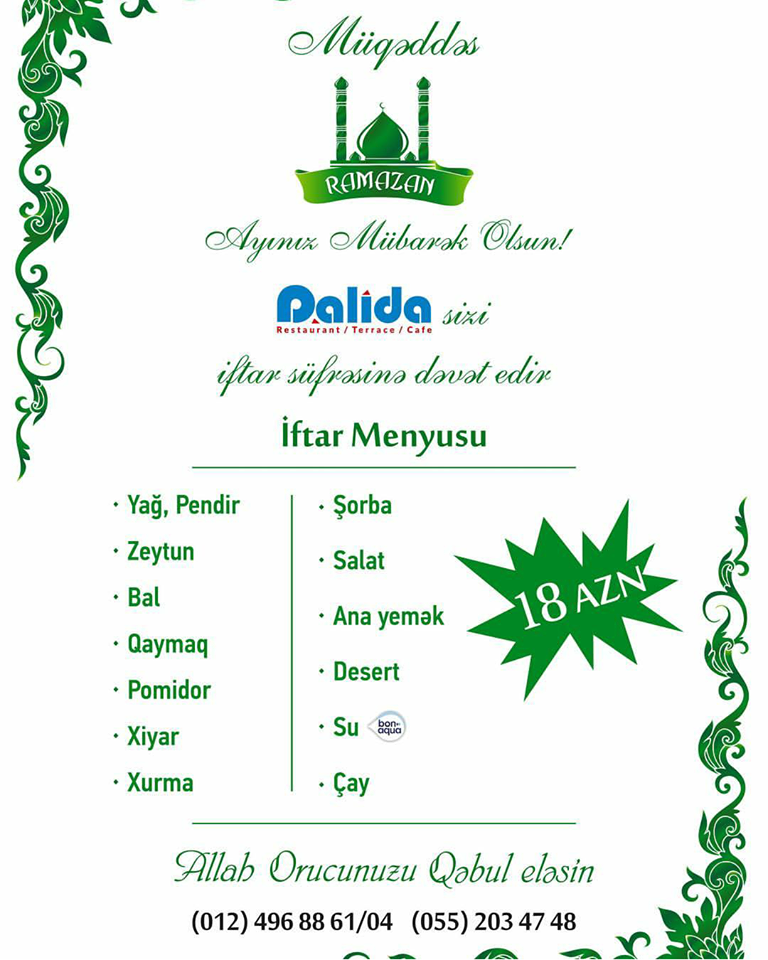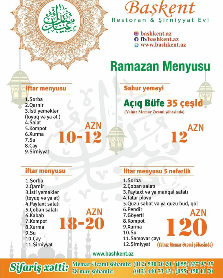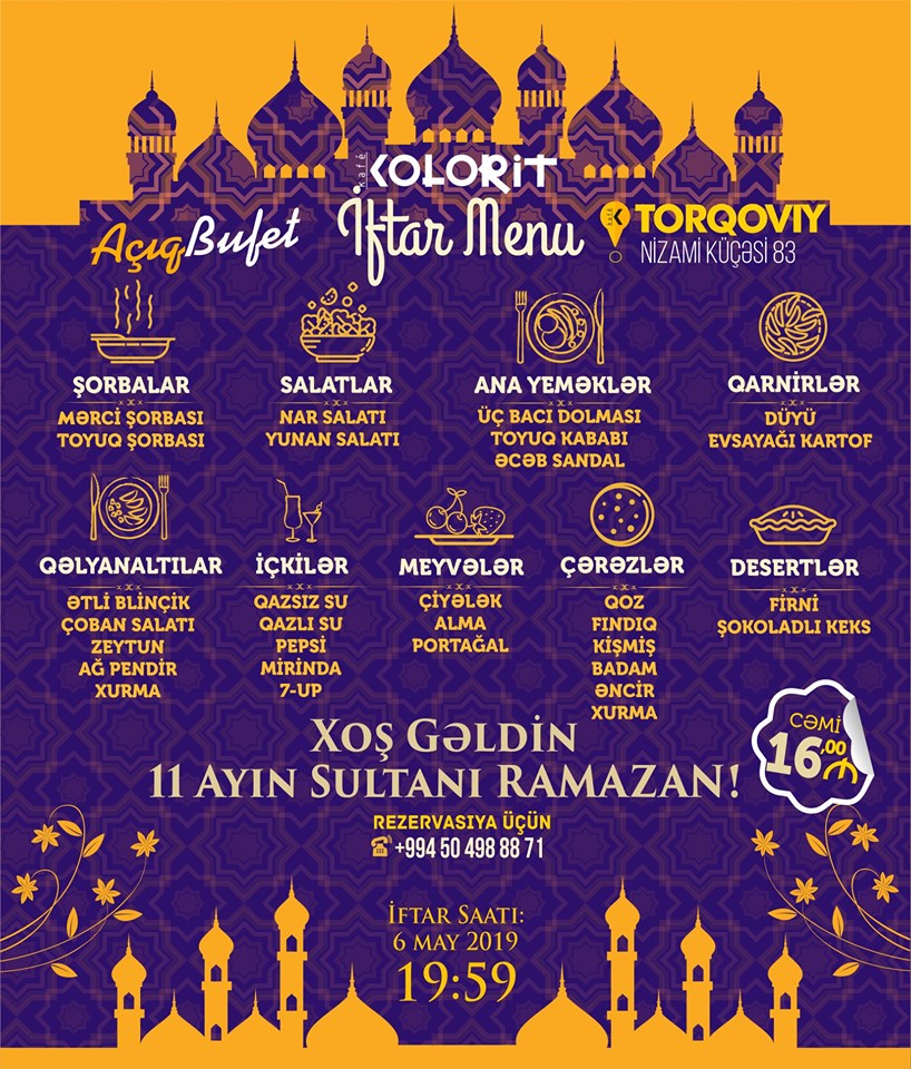 Seyyah.az Bakı restoranlarının iftar menyusun sizə təqdim edir: